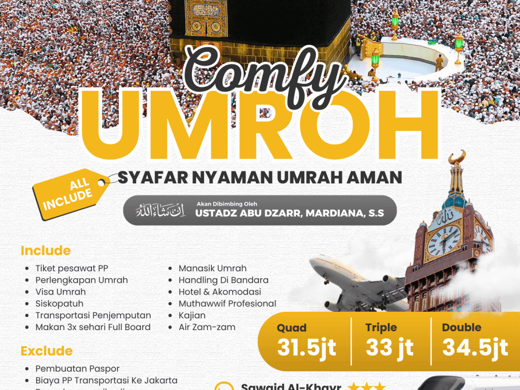 30 hari sebelum tanggal keberangkatan, dikenakan biaya pembatalan sebesar 25% dari harga paket.
