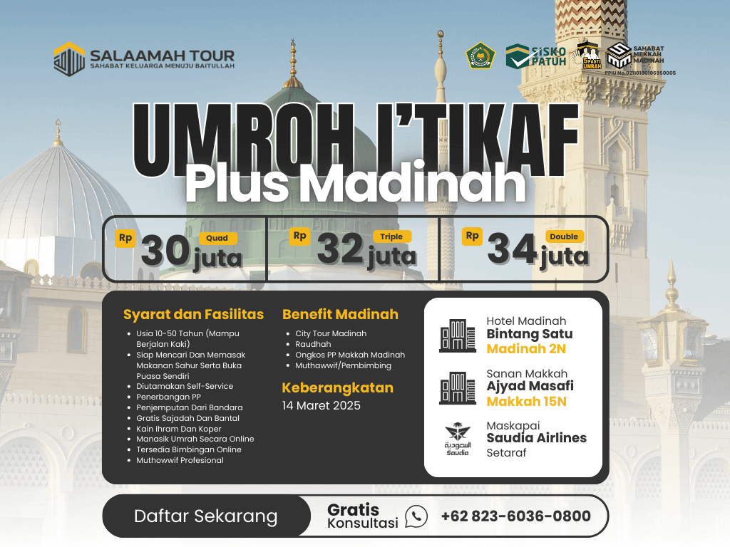 Umroh Ramadhan Hemat di Makkah Plus madinah 2n 14 Maret -1 April